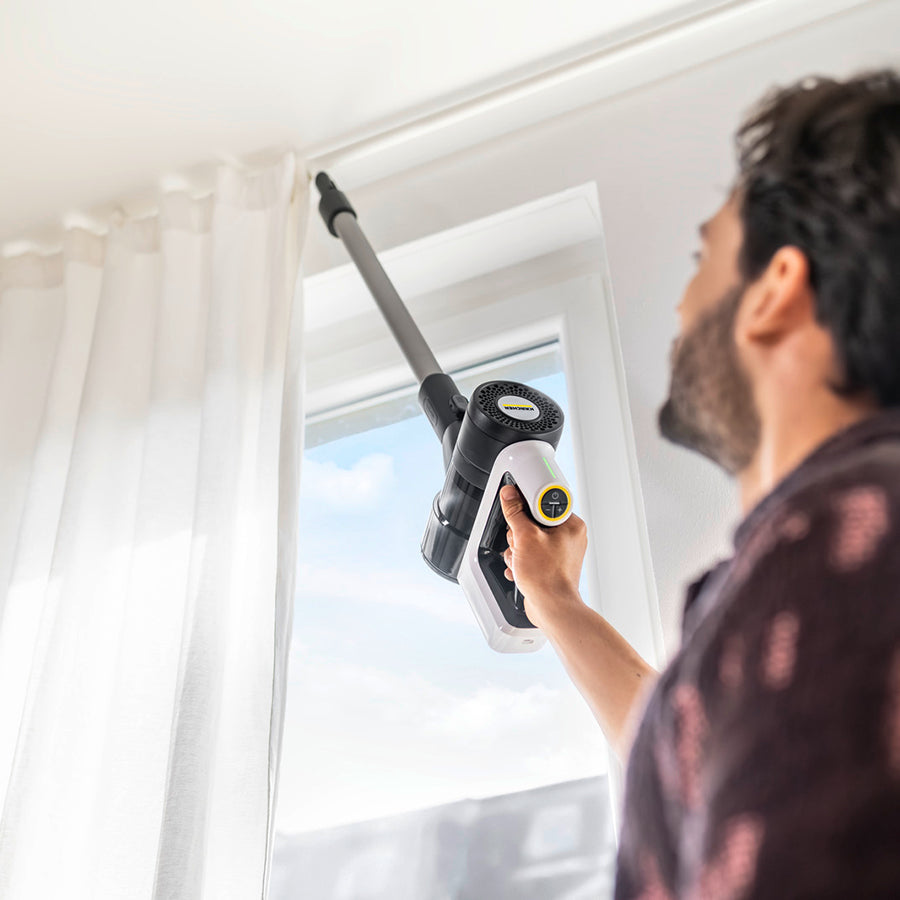 Weighing only approx. 2.3 kg in total, it takes the strain out of cleaning, especially up stairs or overhead.